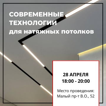 Современные потолки - это технически-сложная конструкция, в которой применяется множество технологий. На семинаре разберёмся в новинках оборудования, технических решениях для успешного монтажа и эксплуатации натяжных потолков.