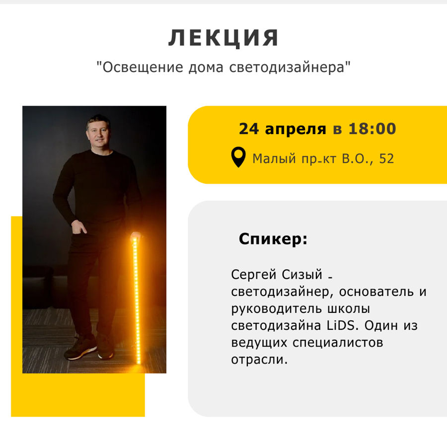 10.04.2024 Приглашаем вас принять участие в лекции "Освещение дома светодизайнера", которая состоится в нашей студии света simpleLED! 10.04.2024