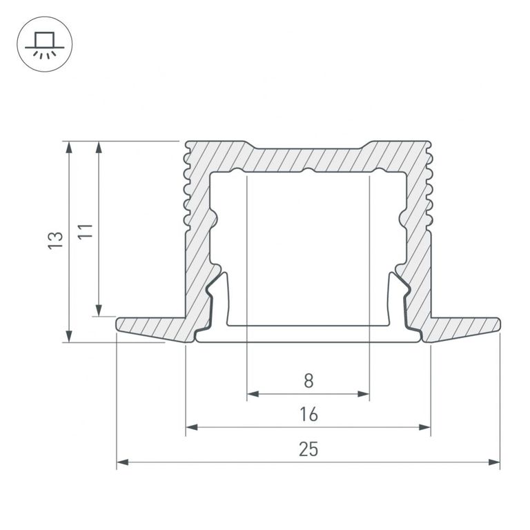 Встраиваемый профиль с фланцем. Анодированный алюминий. Паз для установки 16х11.5 мм.