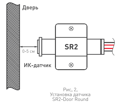 SR2-Door Round включает свет при открытии двери, и выключает при закрытии. Расстояние срабатывания от 0-5 см. Длина кабеля 2 м.
