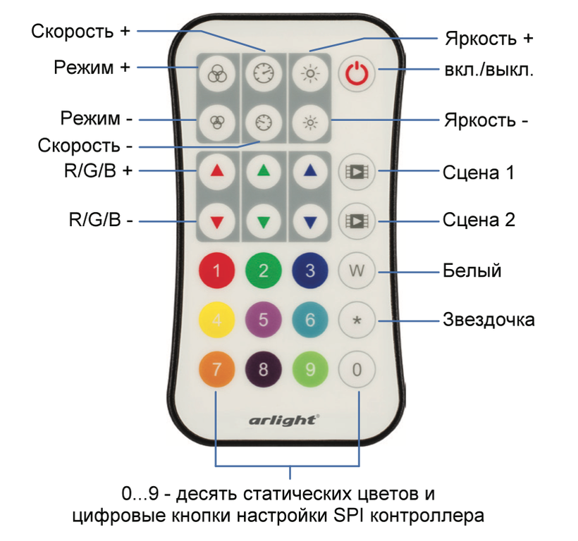 Кнопочный радиопульт 2.4 ГГц, белый корпус, для управления SPI контроллером SMART. 1 зона управления. Питание 3VDC (CR2032). Габариты 107x58.5x9 мм. Изготовлен из пластика с покрытием, защищающим от загрязнения. Управляет контроллерами и панелями серии SMART (поставляются отдельно).