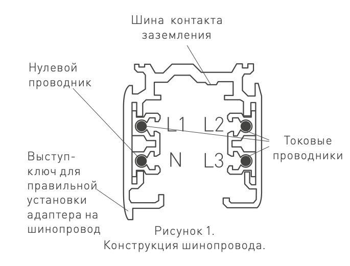 3-фазный трек 4TR, на 4 провода, длина 1м.