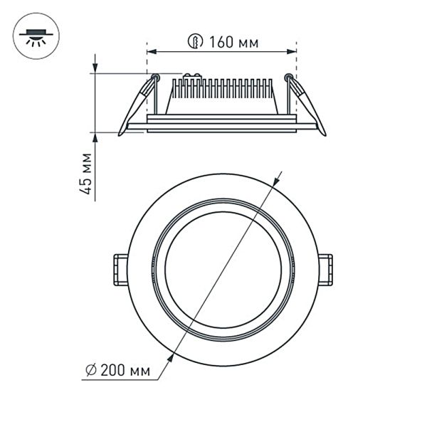 Врезное отверстие: Ø160 мм