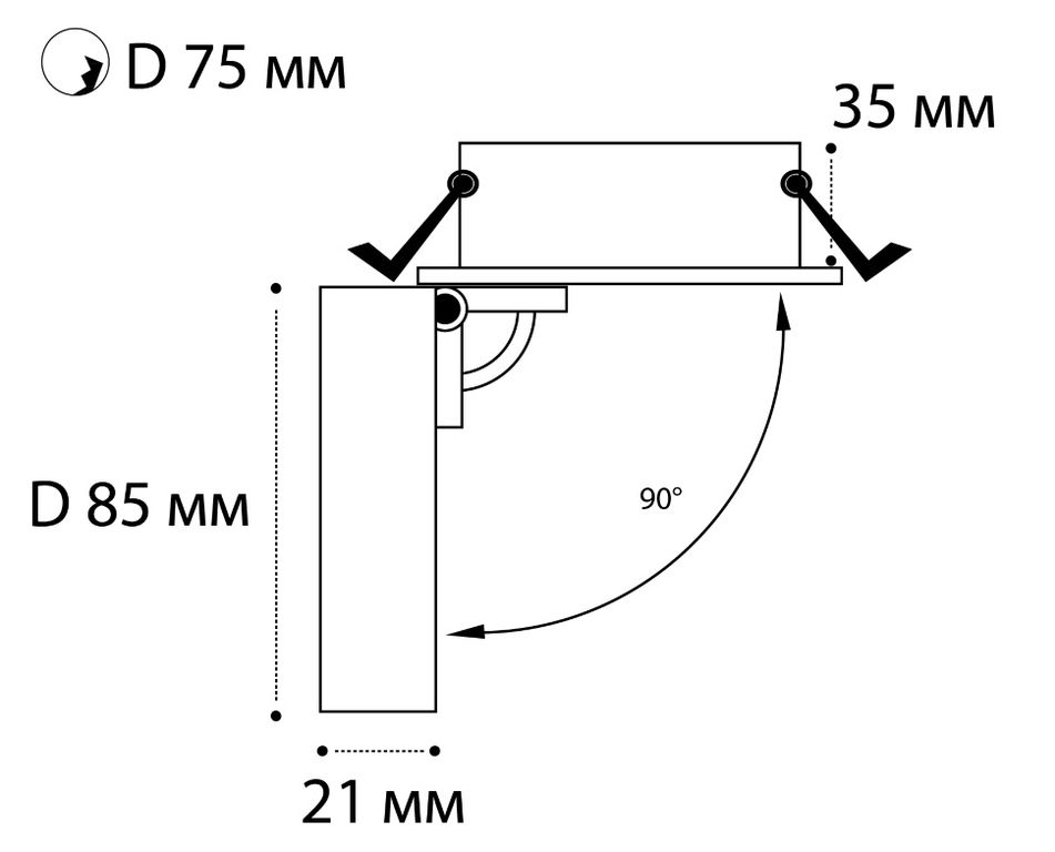 Врезное отверстие: Ø75 мм