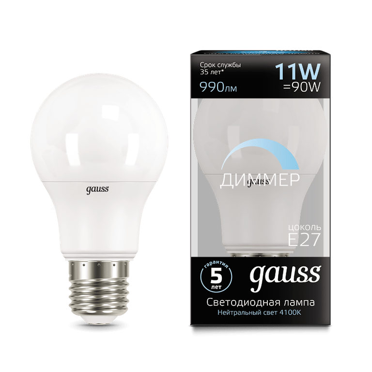 Светодиодная лампа Gauss серии LUX диммируемая.