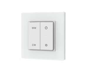 Накладная кнопочная панель 2.4 ГГц, цвет белый. Материал - стекло. Для управления мультибелыми (MIX) источниками света (ШИМ). Совместима с контроллерами SMART.