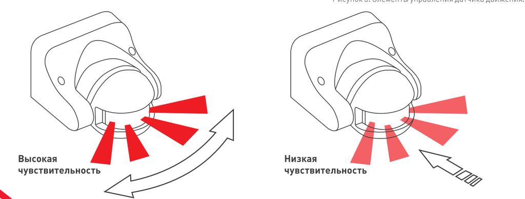 Инфракрасный датчик движения, совмещенный с датчиком освещенности, регулировка времени (5с–8мин), расстояния (до 12 м), освещенности (5-2000люкс).