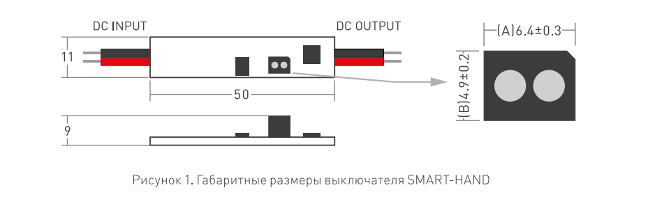 Внимание! Перед подачей напряжения убедитесь в правильности всех подключений и отсутствии замыкания на выходе выключателя. Короткое замыкание или подключение светодиодной ленты с неправильной полярностью может привести к фатальному повреждению выключателя!
