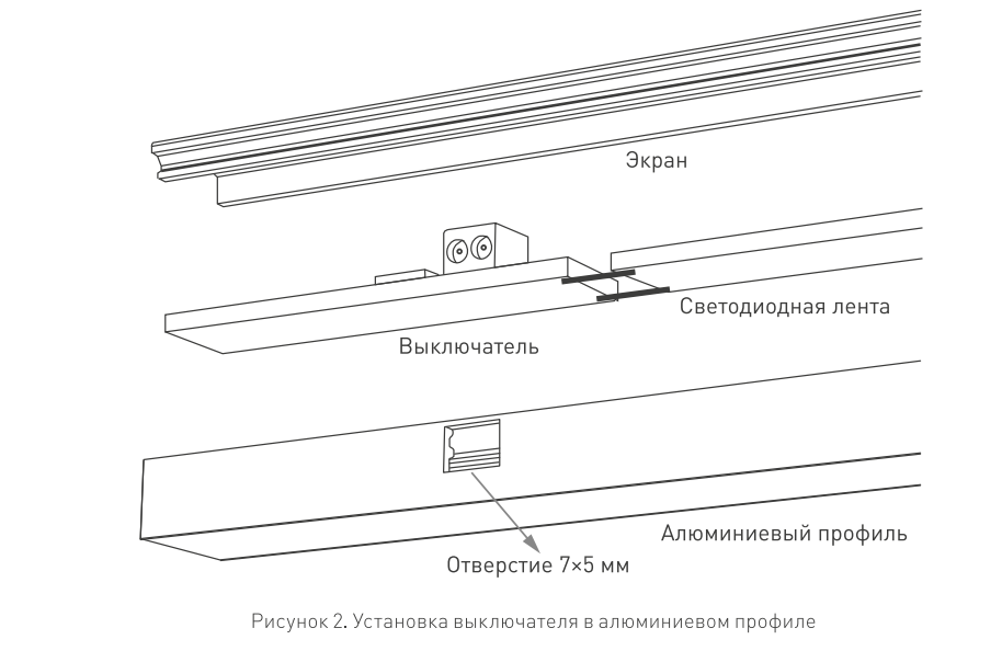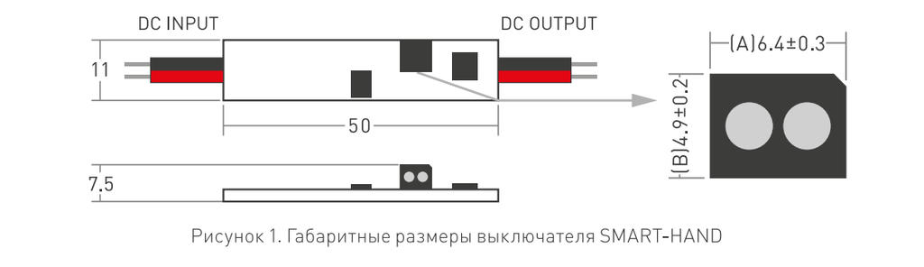 Внимание! Перед подачей напряжения убедитесь в правильности всех подключений и отсутствии замыкания на выходе выключателя. Короткое замыкание или подключение светодиодной ленты с неправильной полярностью может привести к фатальному повреждению выключателя!