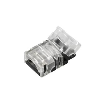 Одиночный коннектор для соединения 2-х отрезков герметичных (IP54/IP65) светодиодных одноцветных лент SE (заливка силиконом сверху) шириной 8 мм. Материал - пластик. Максимальный допустимый ток 3 А, напряжение 3-24 В.