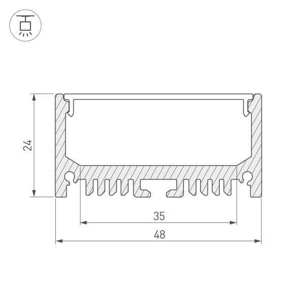 Алюминиевый анодированный подвесной профиль для светодиодных лент и линеек. Ширина площадки для ленты 35 мм. Сопутствующие товары и аксессуары - приобретаются отдельно. Цена указана за 2 метра.