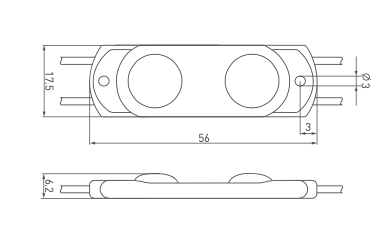 Герметичный светодиодный модуль IP67, напряжение 12 В, мощность 0.8 Вт, св. поток 80 лм, 2 светодиода SMD 2835, угол 170°. 20 шт на проводе, расстояние между центрами модулей 157 мм, длина провода между модулями 100 мм, рекомендуемая глубина установки 40–100 мм. Размер 56х17.5х6.2 мм. Гарантия 5 лет. Высокая световая эффективность.