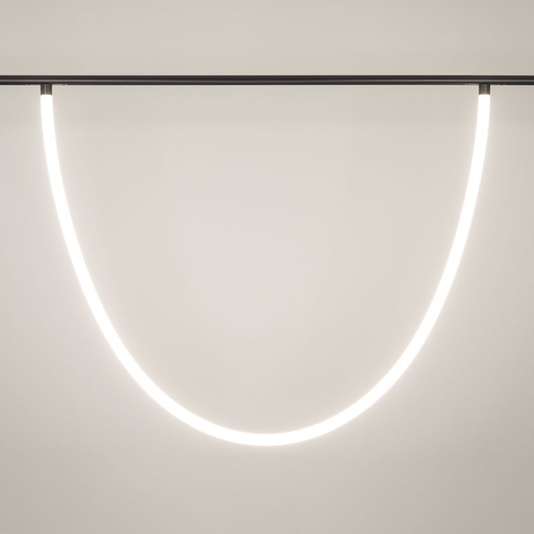 Светильник гибкий для магнитных треков серии FLEX. Мощность 70 Вт, св. поток 4700 лм, 67 лм/Вт, дневной 4000 K, CRI>90, угол 360°, напряжение питания 48 В. Матовый белый фигурный корпус из силикона. Размер: диаметр 30 мм, длина 5000 мм. Монтаж на магнитный трек FLEX.