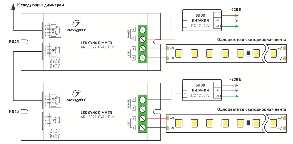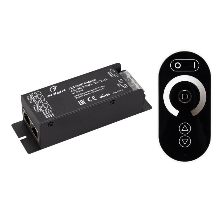 Диммер Arlight ARL-OVAL-DIM - универсальный радиочастотный 1-канальный диммер для регулировки яркости светодиодной ленты и других источников света с напряжением питания 12 или 24 В.