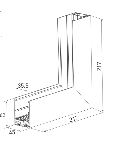 Угловой внунтренний прямой коннектор для трека MAG-TRACK-4563, соединения типа внутреннии? угол. Для создания протяженных или разветвленных линий.