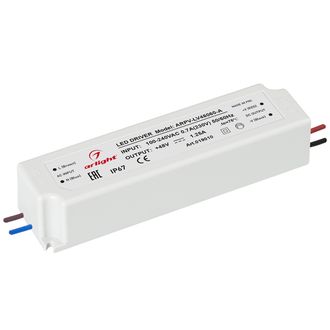Источник напряжения с гальванической развязкой для светодиодных изделий. Работает от сети переменного тока напряжением 100-240 вольт. На выходе выдаёт 48 вольт, 1,25 ампера и мощность 60 ватт. Встроенный PFC с коэффициентом более 0,5.