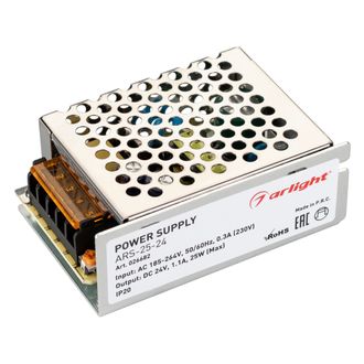 На выходе устройство обеспечивает напряжение 24 вольта, ток 1,1 ампера и мощность 25 ватт. У него есть встроенный корректор коэффициента мощности (PFC), который больше 0,5.