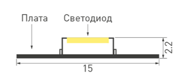 Размеры ленты составляют 5000х15х2,2мм. Минимальный отрезок составляет 50 мм и содержит 6 светодиодов.
