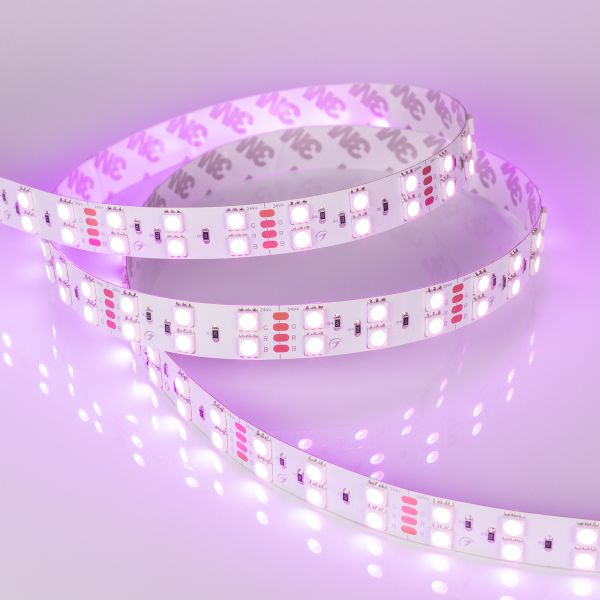 Лента поддерживает цвет RGB и имеет угол рассеивания света 120°. Работает от источника питания 24 В и потребляет мощность 28,8 Вт/м (всего 144 Вт на 5 м).