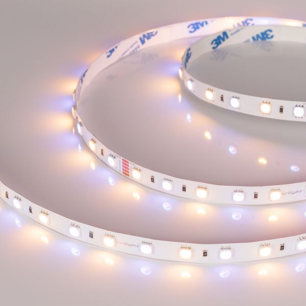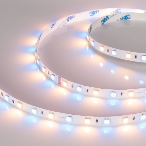 Цвет ленты может быть как RGB, так и тёплым с цветовой температурой 2700 K. CRI превышает 85, угол обзора 120°. Лента работает от источника питания 24V, мощность 14,4 Вт/м (или 72 Вт на 5метров).