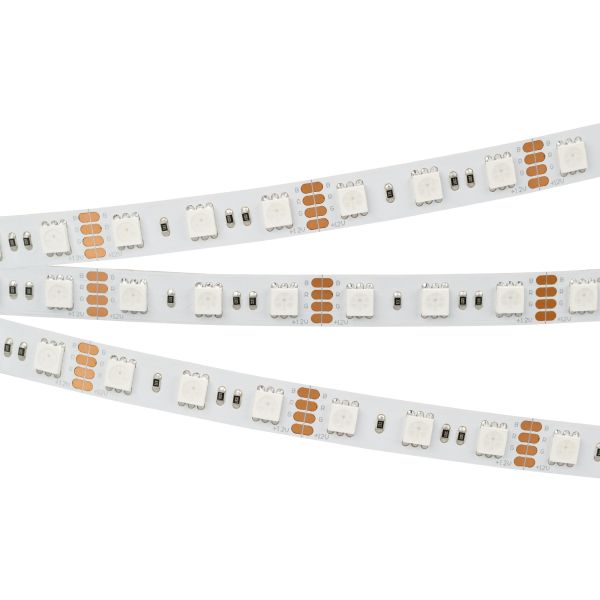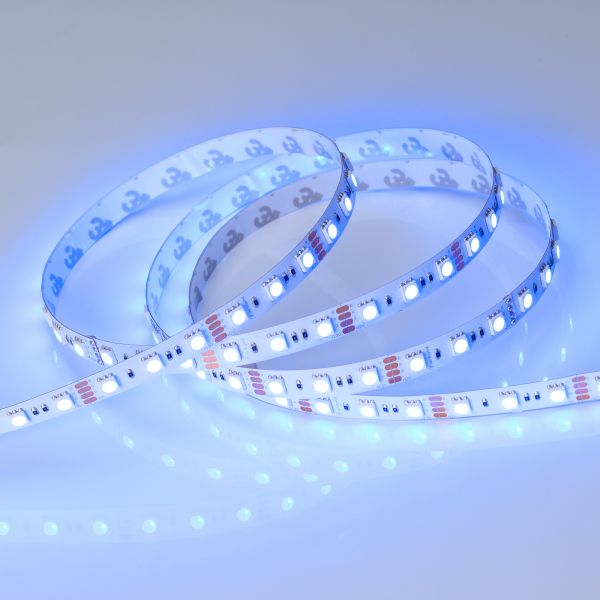 Лента поддерживает цвет RGB и имеет угол рассеивания света 120°. Работает от источника питания 12 В, мощность 15 Вт/м (всего 75 Вт на 5 м).