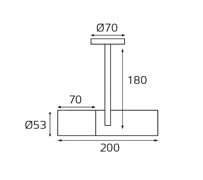 Размер: плафон D53 мм х h 200 мм, ножка: h 180 мм