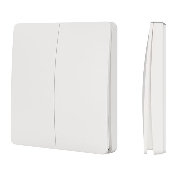 Накладная белая пластиковая панель с клавишным управлением. Предназначена для включения и выключения, а также регулировки яркости двух групп освещения. Работает на частоте 433 МГц.