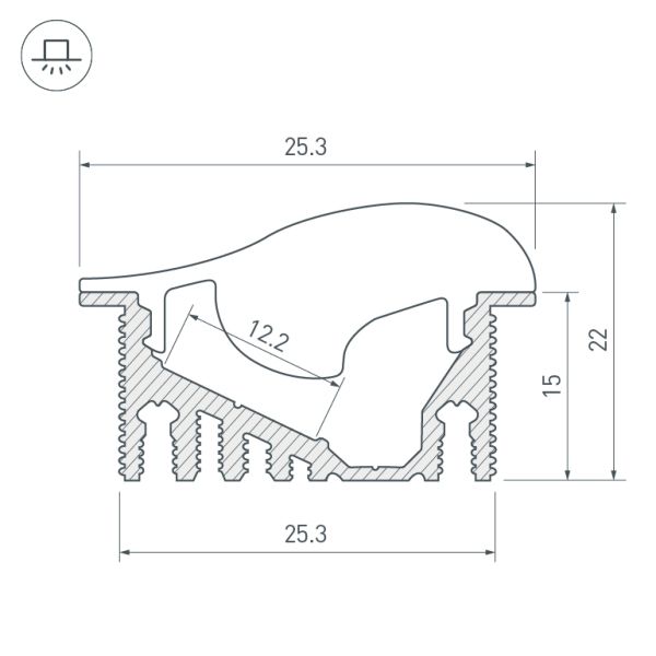 Встраиваемый профиль с накладным фланцем и ассиметричным рассеивателем-линзой.