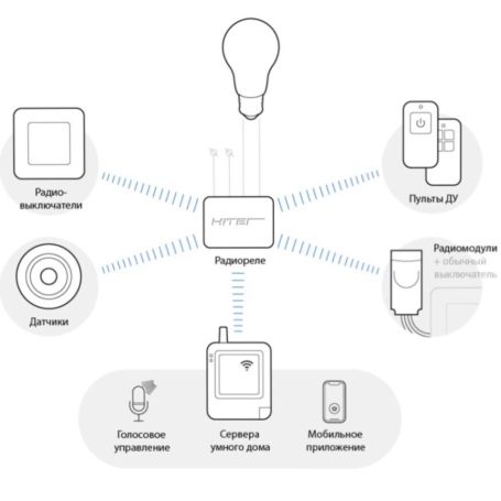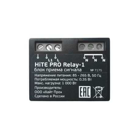 Блок радиореле HiTE PRO Relay-1 подключается к светильнику (или другому прибору), которым нужно управлять с помощью беспроводных выключателей или ДУ пультов HiTE PRO. Получая сигнал от радиовыключателя блок Relay-1 замыкает/размыкает электрическую цепь.