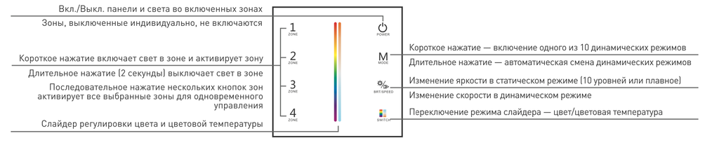 Панель Arlight Sens SMART-P55-MULTI с сенсорным управлением предназначена для беспроводного управления одноцветными и многоцветными светодиодными источниками света.