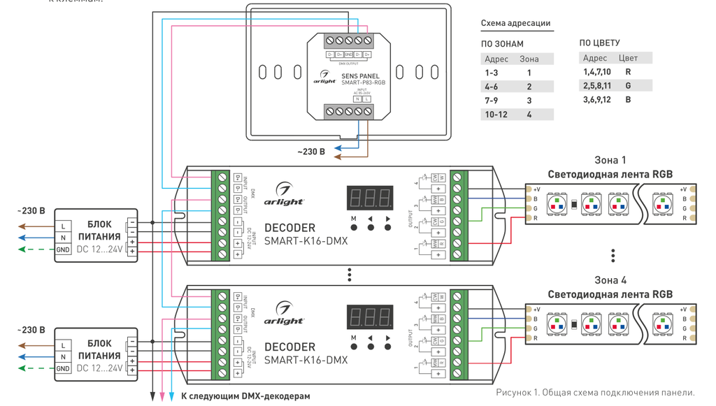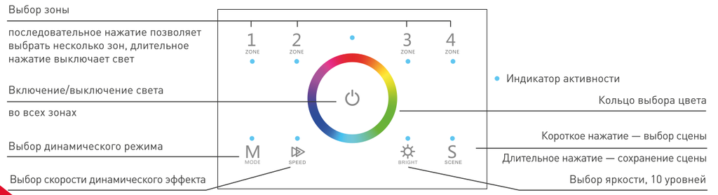 Панель Arlight Sens SMART-P83-RGB со встроенным контроллером предназначена для управления трехцветными RGB светодиодными источниками света, поддерживающими управление по DMX.