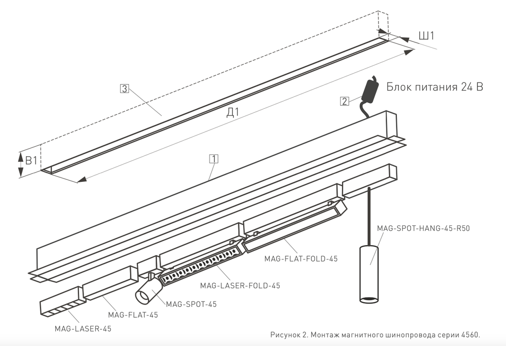 Мощность источника питания выбирается из расчета 100 Вт на 1 м длины сегмента шинопровода.